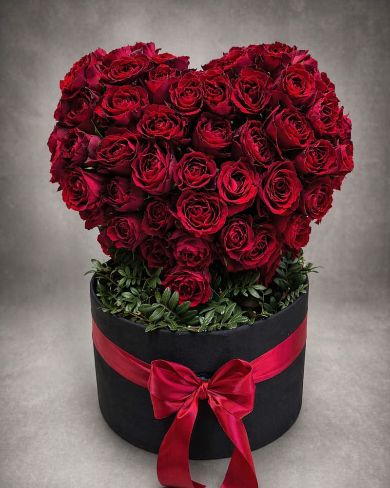 Ovaj luksuzni aranžman od 101 crvene ruže oblikovan je u elegantno srce i smešten u modernu dekorativnu kutiju sa satenskom mašnom. Svaka ruža je pažljivo odabrana i ručno aranžirana kako bi se postigao savršen oblik i bogat, raskošan izgled.