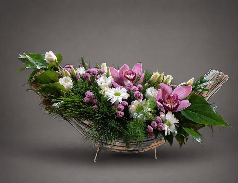 Dekorativni aranžman sa orhidejama i ružama je moderan i elegantan izbor za sve koji žele nešto drugačije od klasičnog buketa. Kombinacija nežnih orhideja, ruža i dekorativnog zelenila daje ovom aranžmanu poseban karakter i prirodnu lepotu.