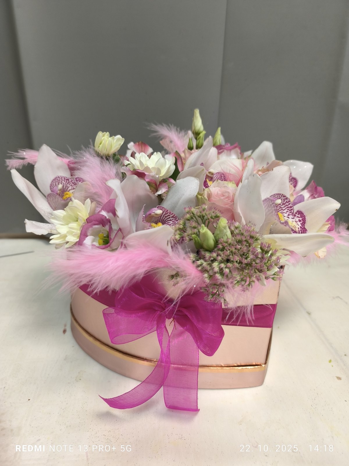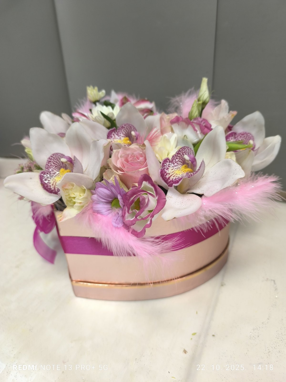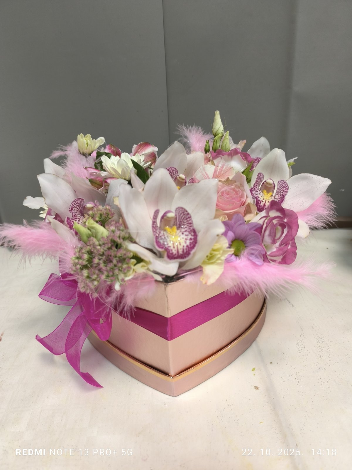 Ovaj prelepi cvetni aranžman od ruža i orhideja spaja eleganciju i luksuz u jedinstvenom spoju boja i mirisa. Savršen je izbor za sve prilike – rođendan, godišnjicu, Dan zaljubljenih, 8. mart ili jednostavno da nekome ulepšate dan. Pažljivo aranžirane ruže simbolizuju ljubav i nežnost, dok orhideje unose dozu sofiticiranosti i stila. Svaki detalj je izraćen s ljubavlju i svežim cvećem vrhunskog kvaliteta.