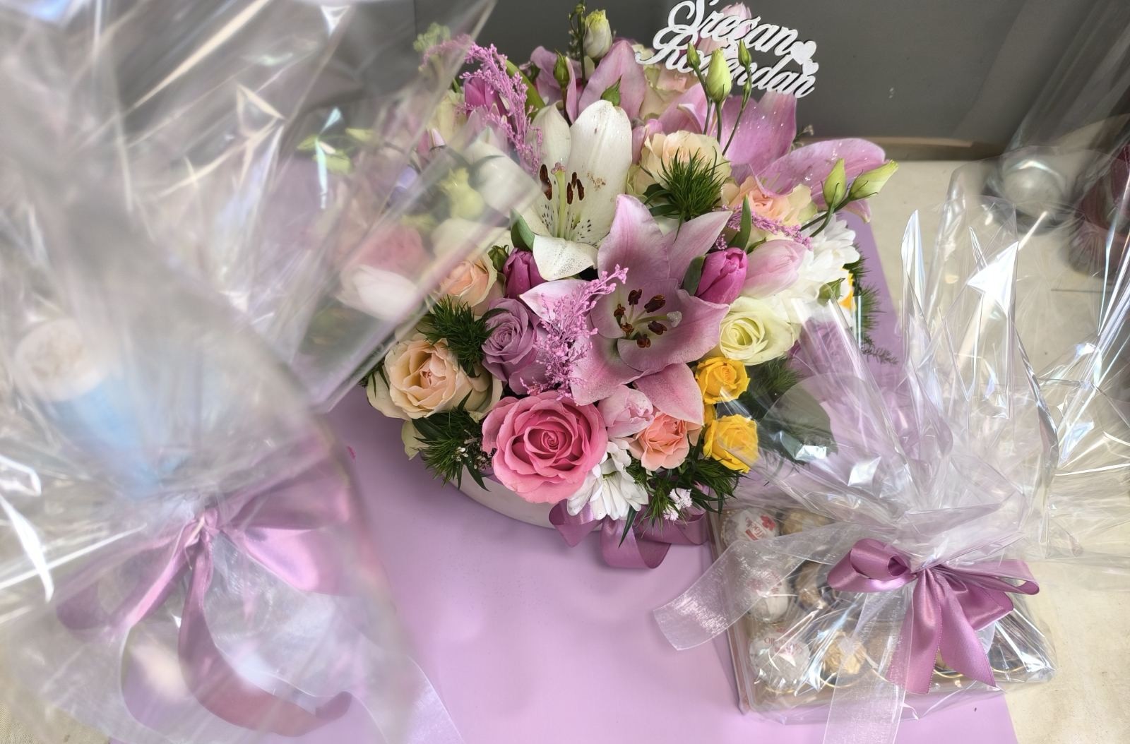 U ponudi su i cvetni aranžmani, luksuzni buketi i poklon setovi, pogodni za različite poslovne prilike.