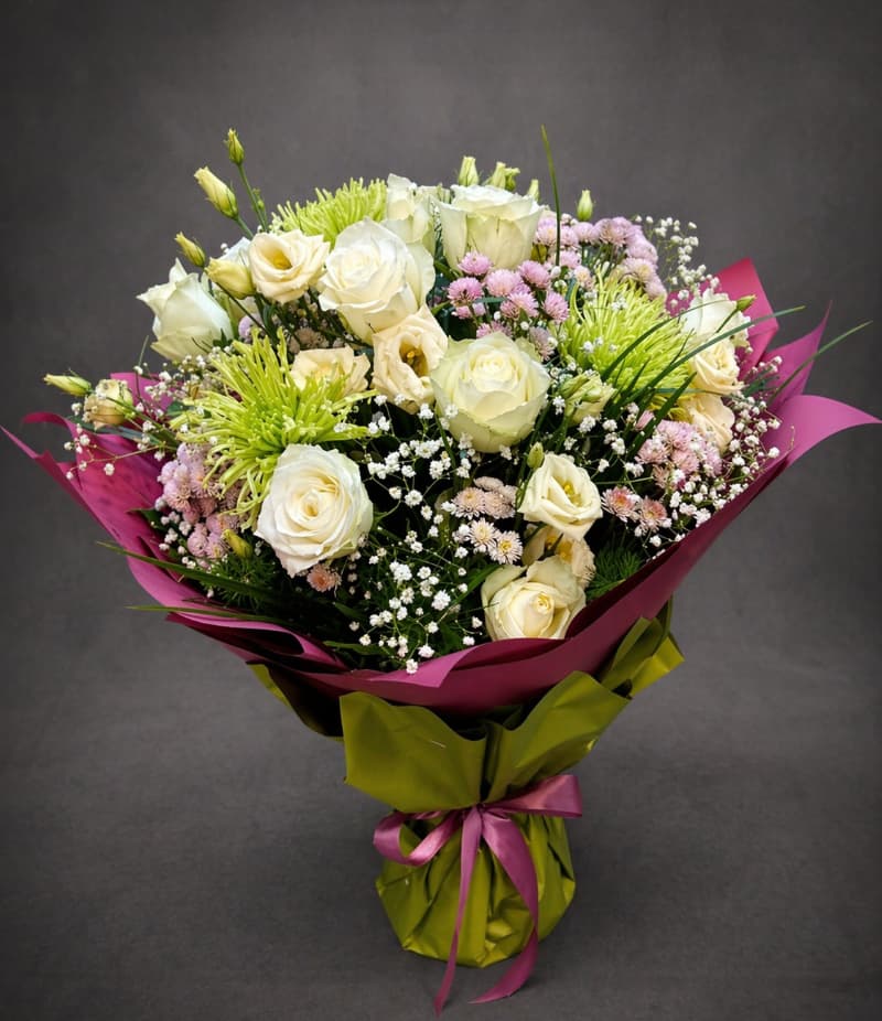 Ovaj aranžman u nežnim belim i pastelno roze tonovima odiše elegancijom i lakoćom, idealan za rođendane, zahvalnice, čestitke ili kao znak pažnje. Savršen je za situacije kada želite gotov aranžman koji se odmah može postaviti i uživati u njemu bez dodatnog sređivanja.