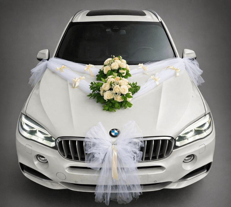 Ova dekoracija unosi dozu romantike i elegancije, čineći svaki automobil posebnim i vizuelno upečatljivim. Idealna je za svadbene kolone, fotografisanje i stvaranje nezaboravnog prvog utiska.