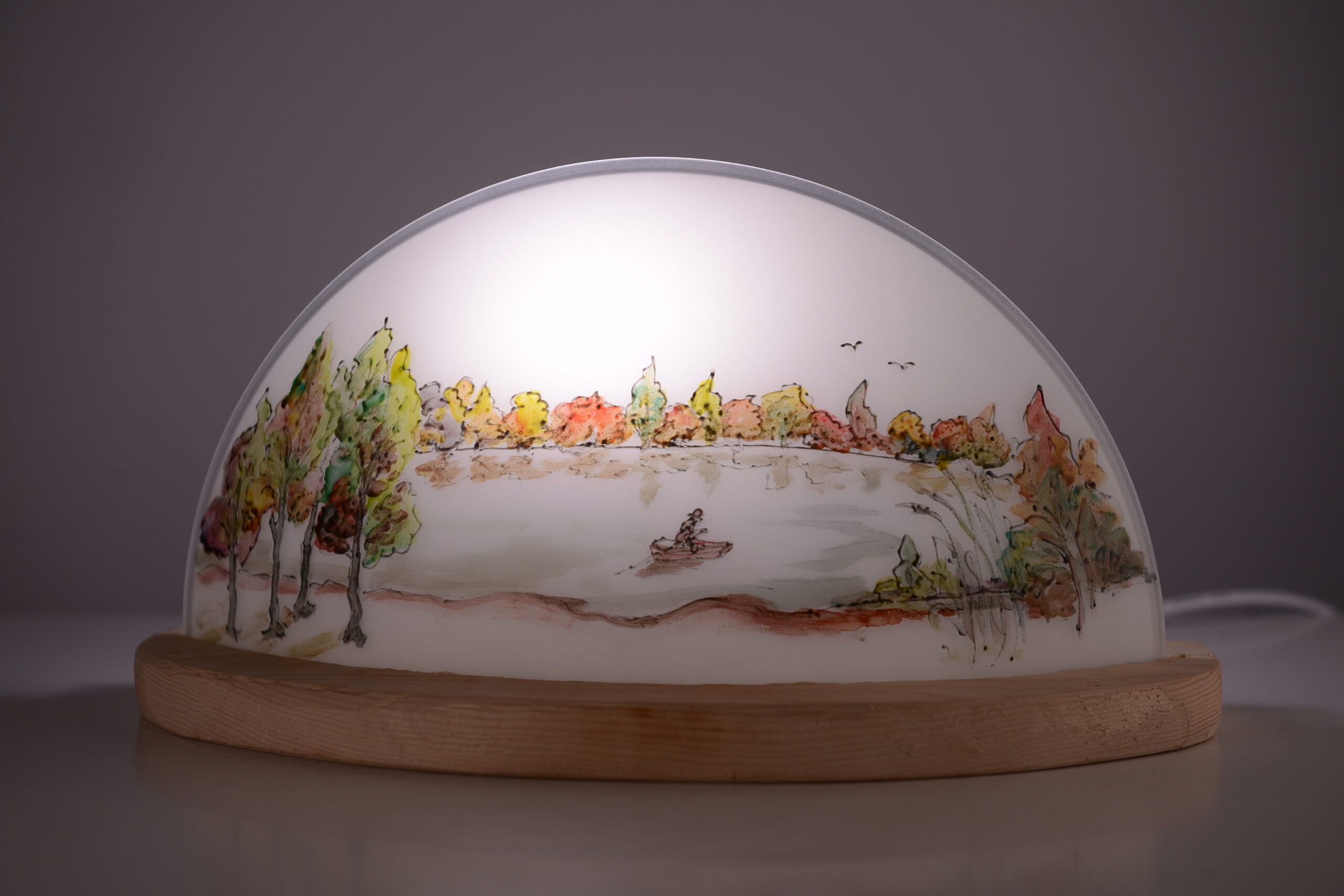 Ručno oslikana stona lampa od punog drveta i stakla.